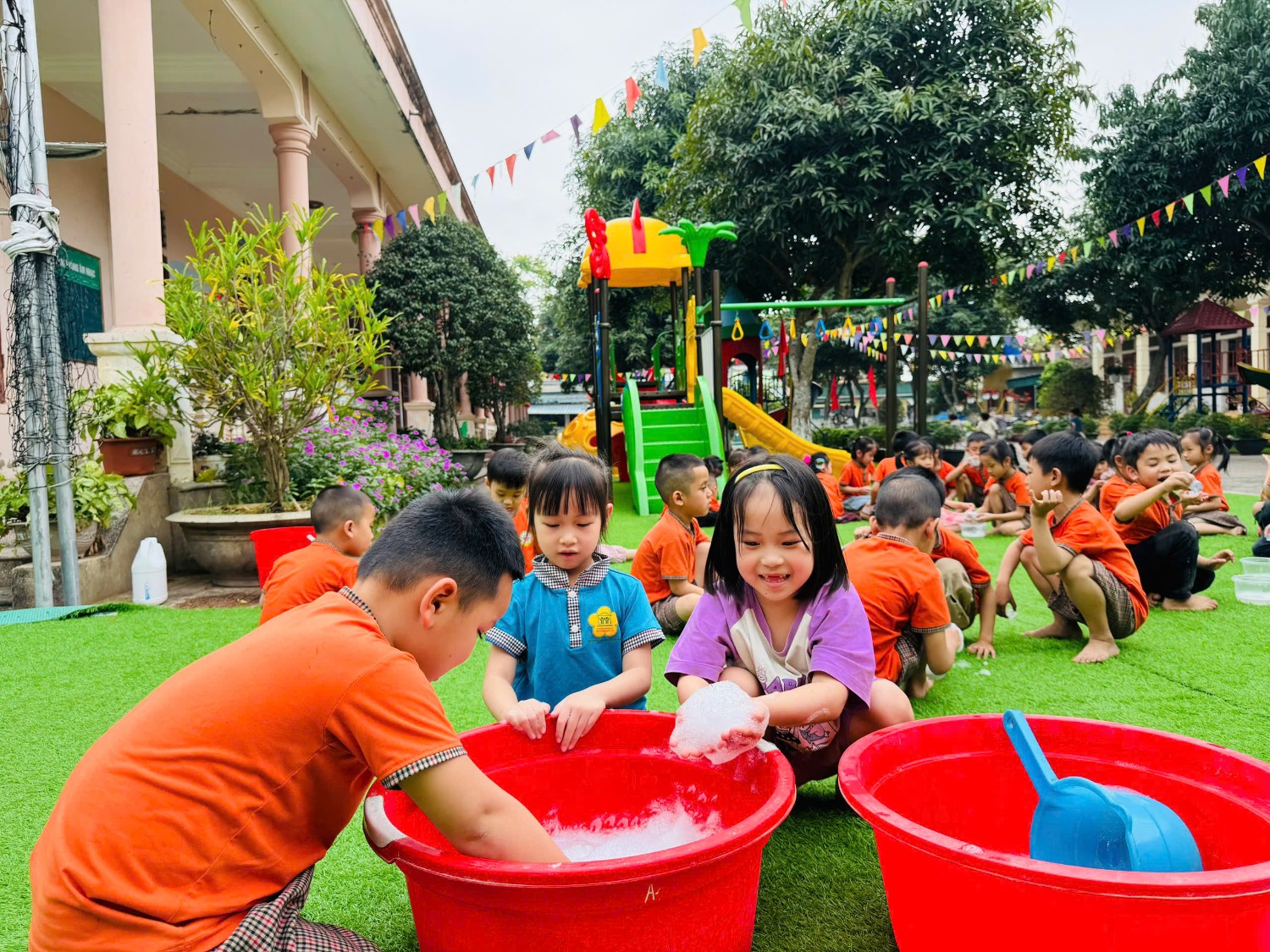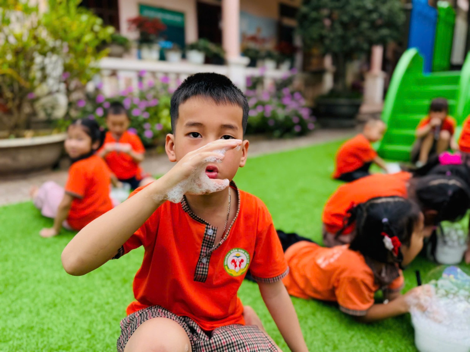 HOẠT ĐỘNG TRẢI NGHIỆM TẠO BONG BÓNG XÀ PHÒNG LỚP 5-6 TUỔI A4.