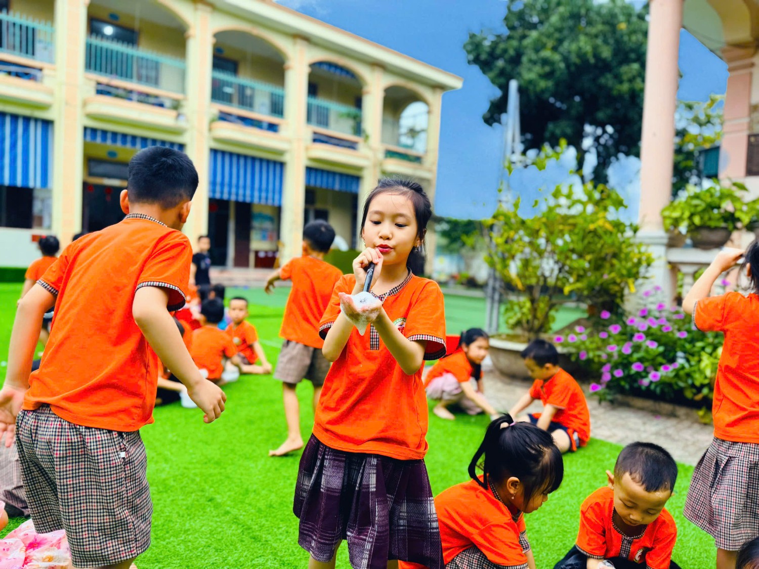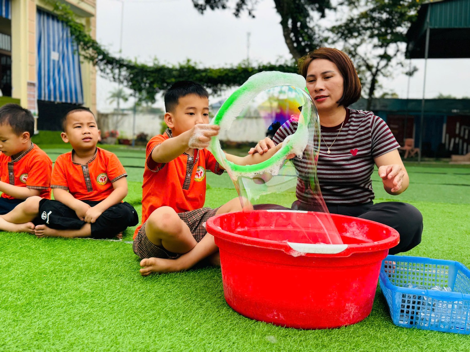 HOẠT ĐỘNG TRẢI NGHIỆM TẠO BONG BÓNG XÀ PHÒNG LỚP 5-6 TUỔI A4.