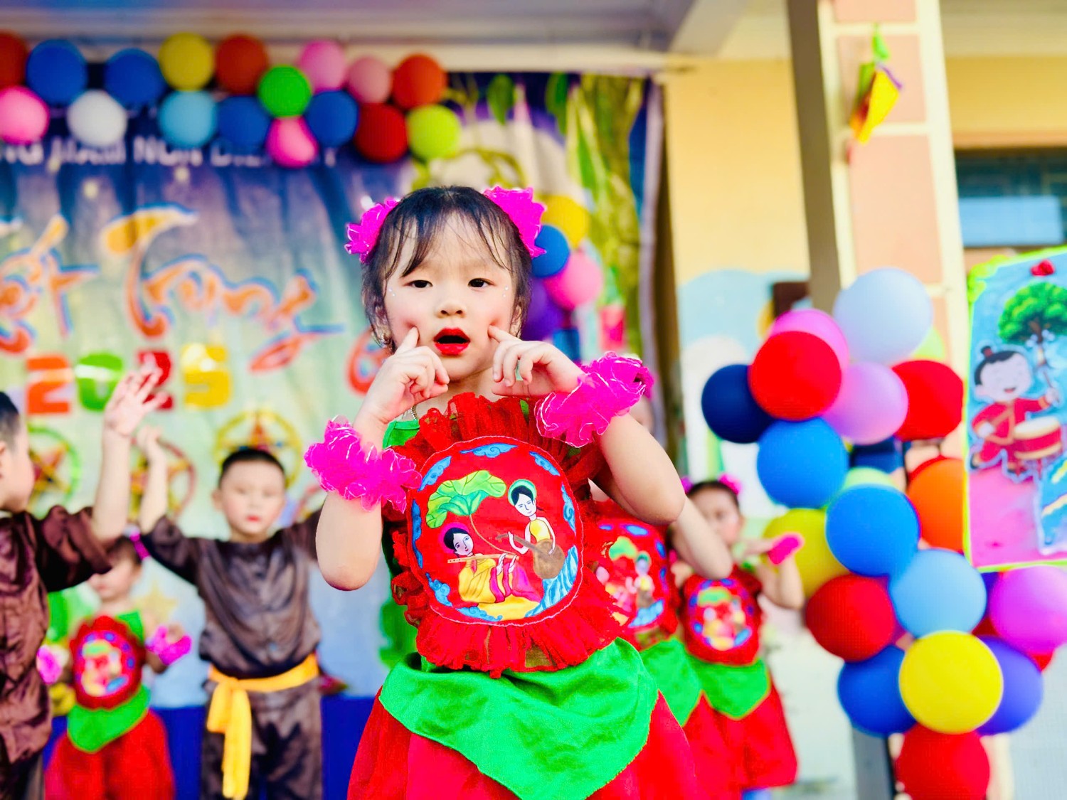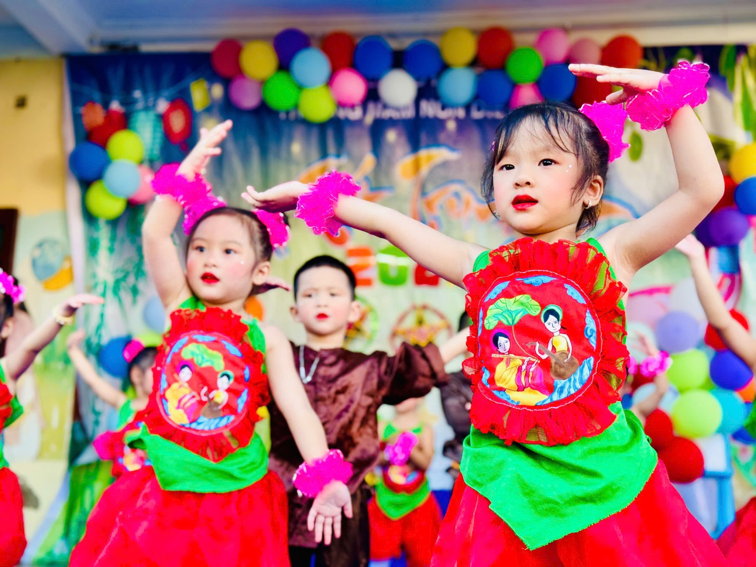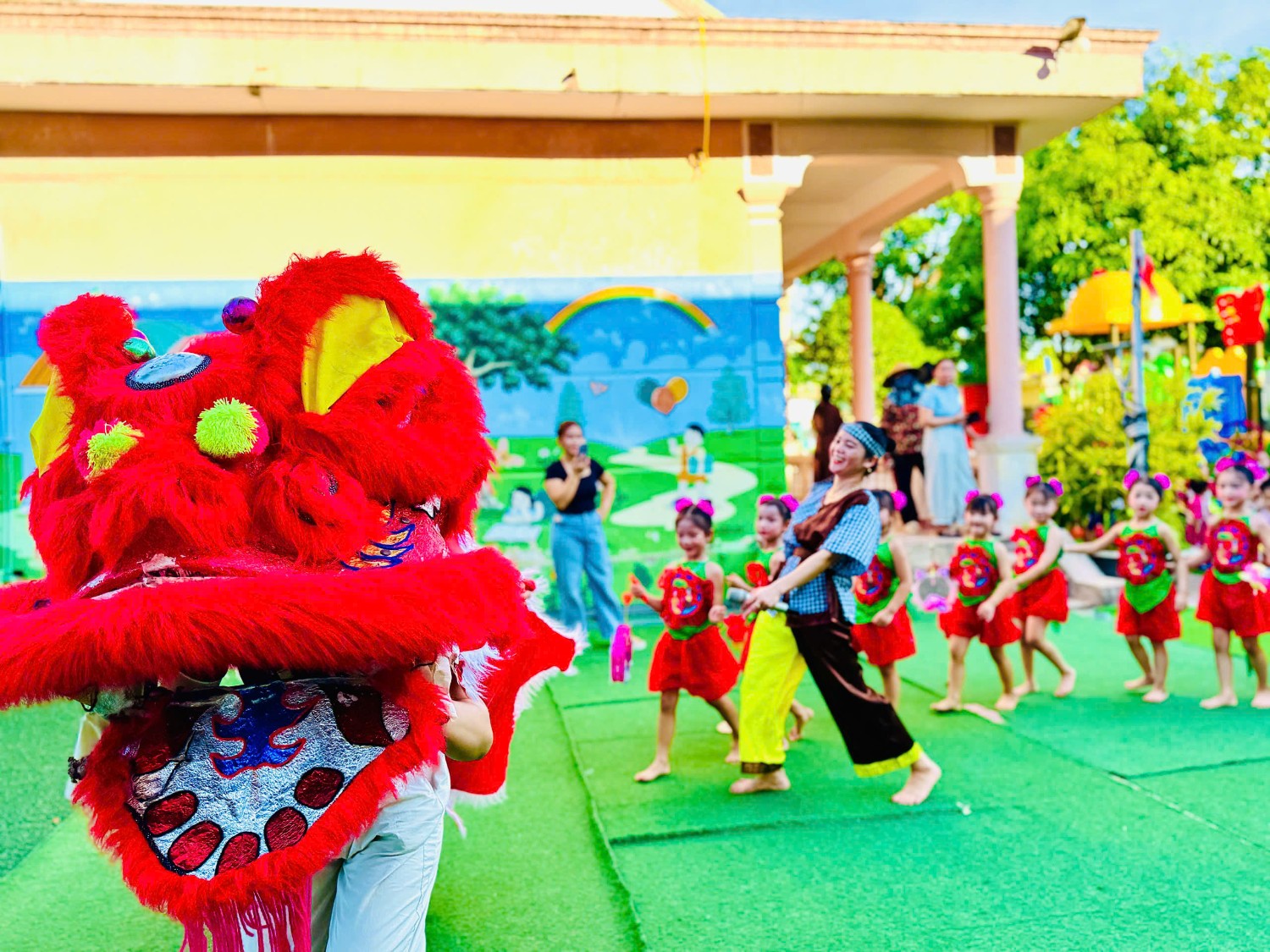 Trong không gian ngập tràn sắc màu của đèn lồng, mâm ngũ quả và tiếng trống lân rộn rã, các bé được chú Cuội, cùng tham gia biểu diễn văn nghệ, rước đèn phá cỗ, và nhận những phần quà từ nhà trường và các bậc phụ huynh